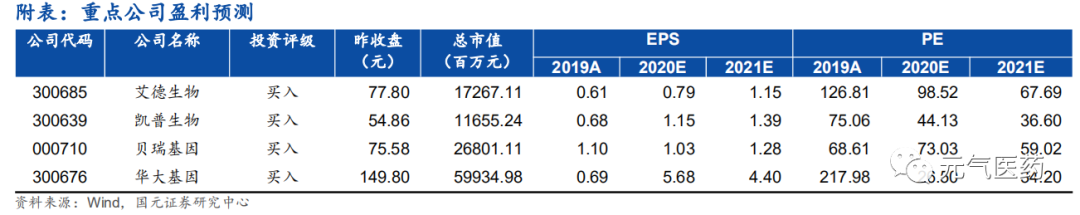 4)上游檢測設(shè)備、核心試劑仍掌握在海外寡頭企業(yè),成本居高,影響企業(yè)盈利性,有待觀察行業(yè)上游設(shè)備企業(yè)發(fā)展情況,如華大智造、博奧晶典等;