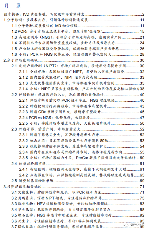 分子診斷應(yīng)用場景多樣化,覆蓋生育健康檢測、腫瘤全周期檢測、傳染病檢測等多個領(lǐng)域,本報告重點梳理了幾個 投資者較為關(guān)注的熱門領(lǐng)域進行剖析,主要包括: