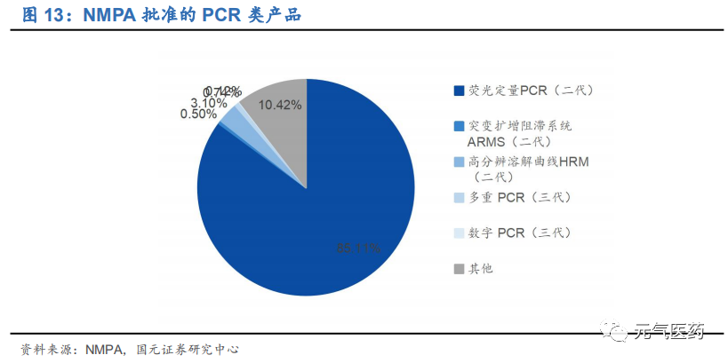 (2)第二階段:20 世紀 90 年代聚合酶鏈式反應(yīng)(PCR)的問世將分子診斷技術(shù) 推向更精準、更高效的階段特別是發(fā)展到第二代的熒光定量 PCR(qPCR)和第三代的數(shù)字 PCR(dPCR);