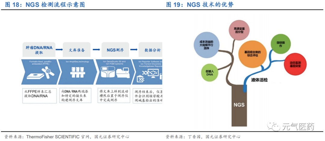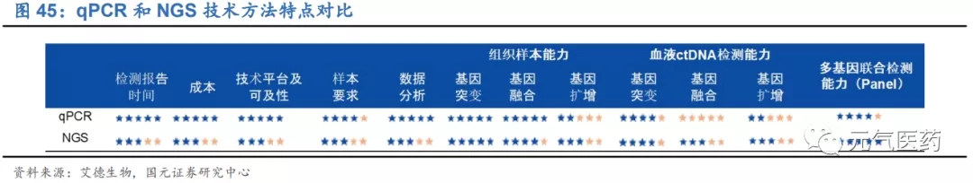 NGS 近幾年發(fā)展迅速,在腫瘤基因檢測應(yīng)用前景廣闊,廣受資本市場的青睞,吸引大量企業(yè)布局 NGS 領(lǐng)域。市場 上有聲音認為 PCR 技術(shù)已經(jīng)過時,NGS 將逐步取代 PCR 成為主流分子診斷技術(shù)。但我們認為,短中期來看,PCR 和 NGS 之間是優(yōu)勢互補、相輔相成、共存發(fā)展而并非替代的關(guān)系,目前 PCR 仍將是主流的分子診斷平臺,NGS 是未來發(fā)展的重要趨勢。