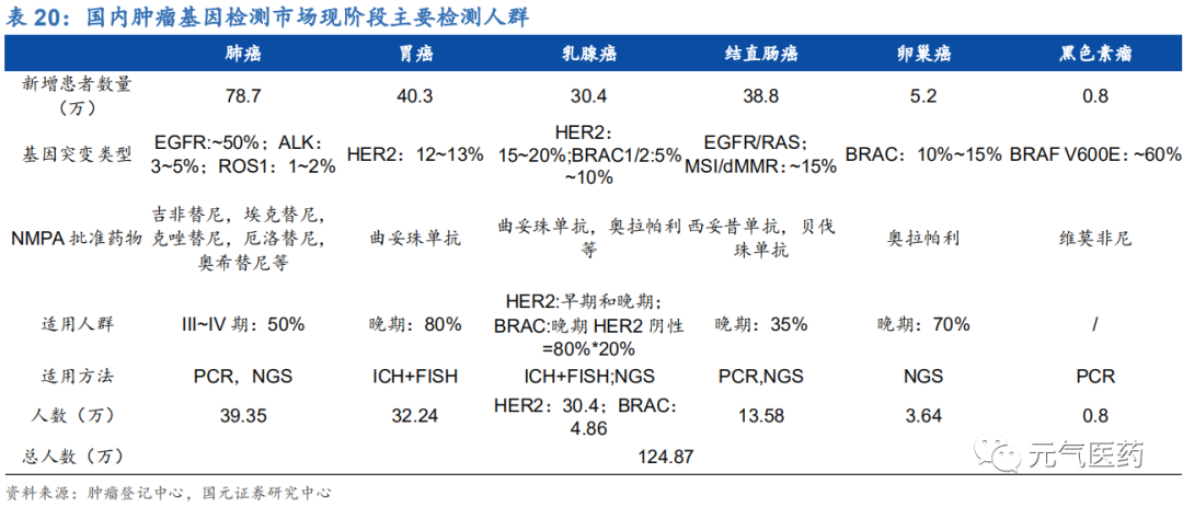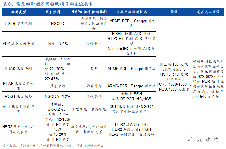 NGS 和液體活檢技術(shù)突破:PCR 技術(shù)目前已較為成熟,但主要用于已知突變,且一次性檢測基因數(shù)量有限, 而 NGS 最大的優(yōu)勢就是高通量,可實現(xiàn)大 Panel 檢測。2020 年 8 月,F(xiàn)DA 批準了首個基于 NGS 技術(shù)的癌癥液體活檢產(chǎn)品,可同時檢測 55 個腫瘤基因的突變;2020 年 7 月,貝瑞基因發(fā)布大 Panel 基因檢測產(chǎn)品“和 全安”,可同時檢測 654 個基因。未來隨著更多基因大 Panel 產(chǎn)品的推出,有望帶動價格提升;