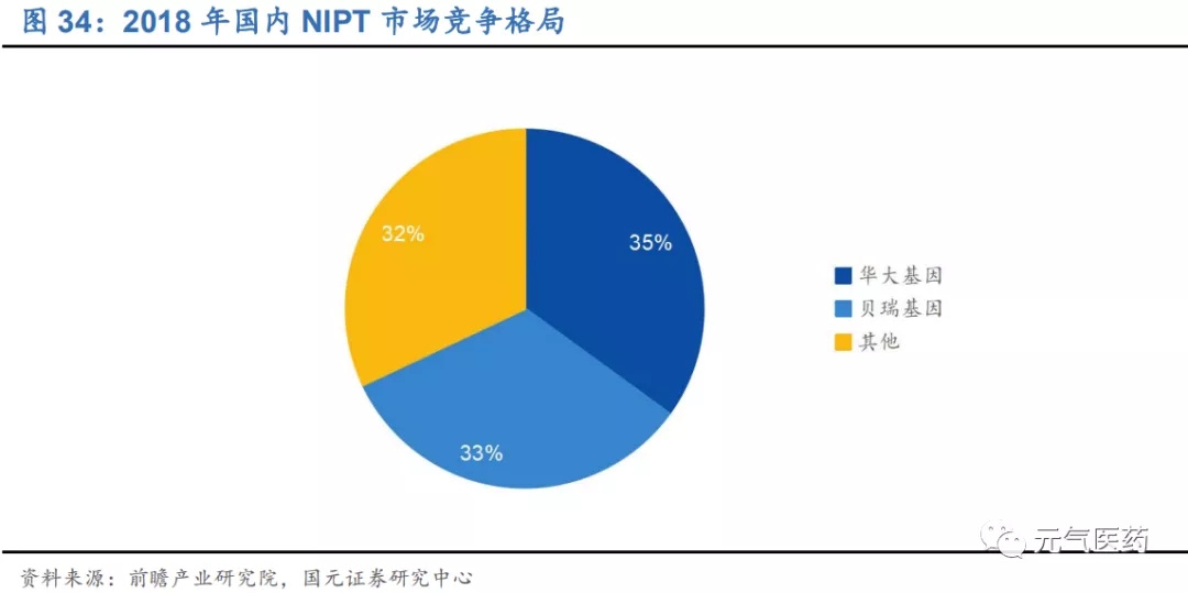 NIPT 是基因測序應(yīng)用最成熟的領(lǐng)域,公司是最早引入 NIPT 并實現(xiàn)商業(yè)化的企業(yè),和華大基因為行業(yè)雙寡頭,先發(fā)優(yōu)勢明顯,產(chǎn)品升級、率先獲得 NIPT 產(chǎn)品延續(xù)注冊的優(yōu)勢將鞏固公司龍頭地位。公司是最早于 2010 年把 NIPT 落地中國并成功實現(xiàn)商業(yè)化的企業(yè),自 2011 年推出全球首個 NIPT 檢測產(chǎn)品后,憑借先發(fā)優(yōu)勢、豐富的臨床數(shù)據(jù)積累 以及自身技術(shù)和平臺優(yōu)勢,在 NIPT 市場處于領(lǐng)先地位,目前市占率在 33%左右。公司不斷擴大 NIPT 業(yè)務(wù)版圖,研發(fā)出檢測病種更多的 NIPT Plus 產(chǎn)品,將篩查疾病種類由三種擴展到百余種,檢出率提高一倍,進一步增加公司 競爭優(yōu)勢,該產(chǎn)品預(yù)計 2020 年申報注冊。2019 年 8 月,公司 NIPT 產(chǎn)品“貝比安”完成 10 萬例臨床驗證后,順利完成產(chǎn)品延續(xù)注冊,目前僅有貝瑞基因一家,這需要企業(yè)同臨床機構(gòu)進行大量合作、同患者進行大量規(guī)范化的隨訪,本身就具有先發(fā)優(yōu)勢的貝瑞基因在率先獲得產(chǎn)品延續(xù)注冊后,在后續(xù)市場競爭中有望繼續(xù)保持領(lǐng)先地位。