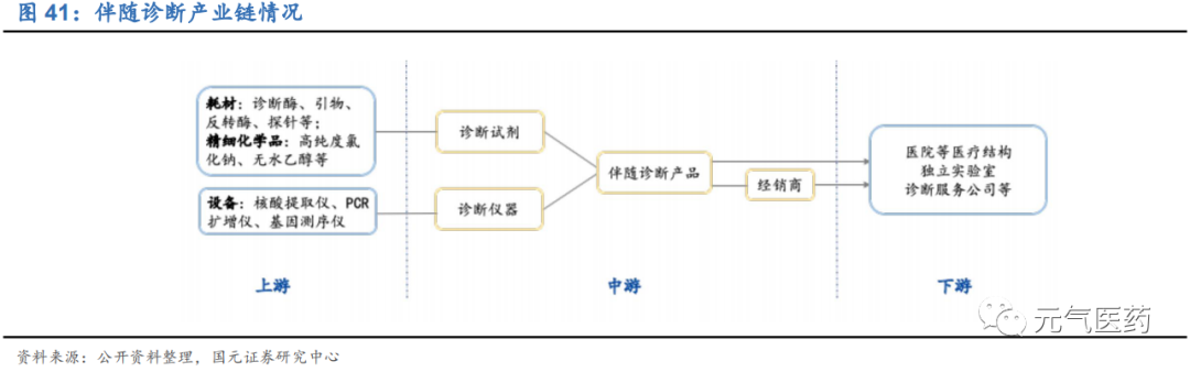 伴隨診斷:多種檢測手段并行,目前以 PCR 為主,NGS 是未來方向,在技術(shù)發(fā)展、新靶點和新靶向藥物發(fā)現(xiàn)、伴隨診斷產(chǎn)品納入醫(yī)保等驅(qū)動力下,檢測市場仍有量價齊升空間。代表企業(yè)包括艾德生物、燃石醫(yī)學(xué)、泛生子等。