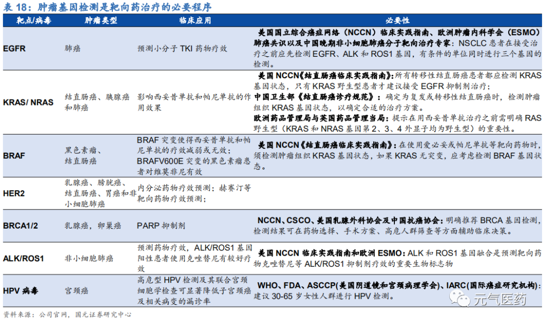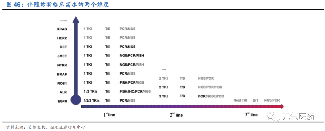 新靶點和新靶向藥物的發(fā)現(xiàn):從行業(yè)發(fā)展階段來看,目前精準醫(yī)療仍處于發(fā)展早期,最為成熟的肺癌領(lǐng)域目前也在不斷發(fā)展中,耐藥機制也使突變位點不斷增加,并出現(xiàn) T790M、MET 等可成藥的突變類型。此外,隨著新藥研發(fā)力度的增強,KRAS G12C、NTRK 等位點也正在被不斷攻克中,伴隨診斷產(chǎn)品也將不斷豐富,市場有望進一步擴大;