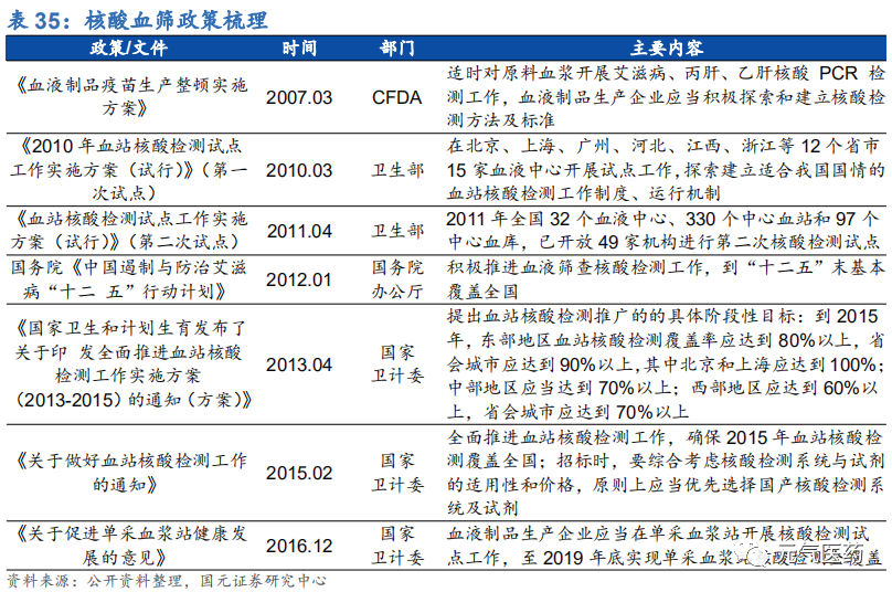 血液篩查是疾病預(yù)防的重要手段,隨著核酸檢測技術(shù)的快速發(fā)展,血篩市場發(fā)展較為成熟,以 qPCR 為主的核酸檢測技術(shù)憑借檢測“窗口期”短、成本可控等優(yōu)勢,成為血液篩查的主要檢測手段,在鼓勵血源核酸檢測在全國實現(xiàn)全面 覆蓋的政策下,核酸檢測手段逐漸普及,目前已基本實現(xiàn)全國血站和漿站全覆蓋。