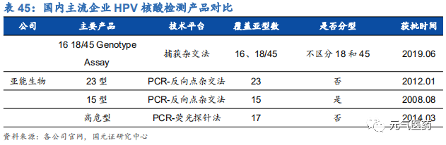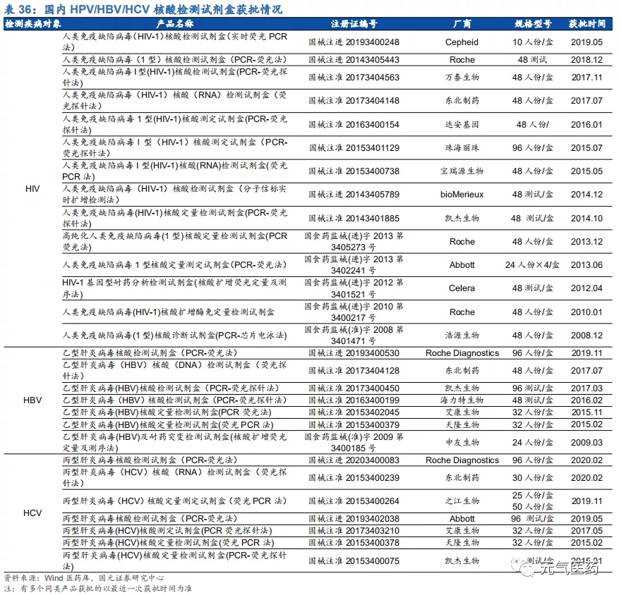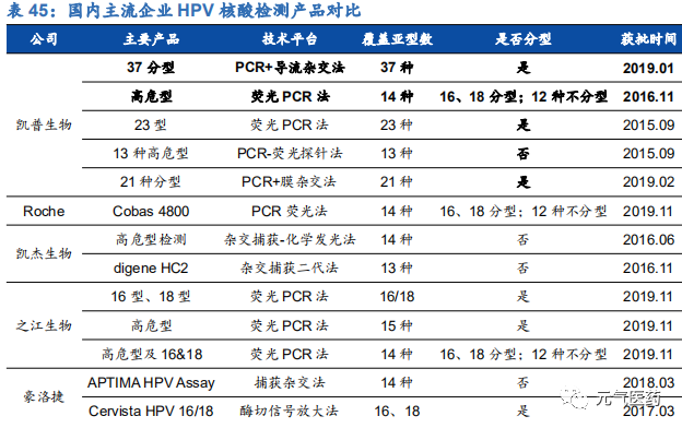HPV 檢測產(chǎn)品線豐富,渠道和品牌優(yōu)勢明顯。目前國內(nèi)獲批的 HPV 檢測產(chǎn)品近百種,涉及 49 家公司,市場競爭激烈,但市場集中度較低,凱普市占率約 1/3,羅氏和凱杰等進口品牌占 1/3,其余 47 家公司瓜分剩余 1/3 市場份額。 公司強大的市場競爭力主要由于公司檢測產(chǎn)品線覆蓋面廣,滿足市場各類需求,和其他廠商相比,具有獲批時間早、覆蓋亞型多、精準分型、檢測時間短等優(yōu)勢。主要競爭對手中,羅氏和凱杰主要在 HPV16/18 分型檢測產(chǎn)品上和公 司競爭,凱杰生物同時在 14 種不分型產(chǎn)品與公司競爭,公司除了上述產(chǎn)品外,還擁有 21 分型、37 分型等諸多產(chǎn)品, 在特定 HPV 檢測要求下具有絕對優(yōu)勢。其中 HPV37 分型試劑盒是目前國內(nèi) HPV 分型最全面、可檢測亞型最多的試劑盒,國內(nèi)尚無競爭對手,適合臨床診斷對全面、精準分型檢測的高端需求;HPV21 分型試劑盒 2006 年就在國內(nèi)獲批,市場推廣時間最長,先發(fā)優(yōu)勢明顯。此外,作為國內(nèi)最早涉足 HPV 檢測市場的企業(yè),公司具有明顯的品牌優(yōu)勢,積累了深厚的渠道資源,保證了公司在 HPV 檢測領(lǐng)域的領(lǐng)先優(yōu)勢。
