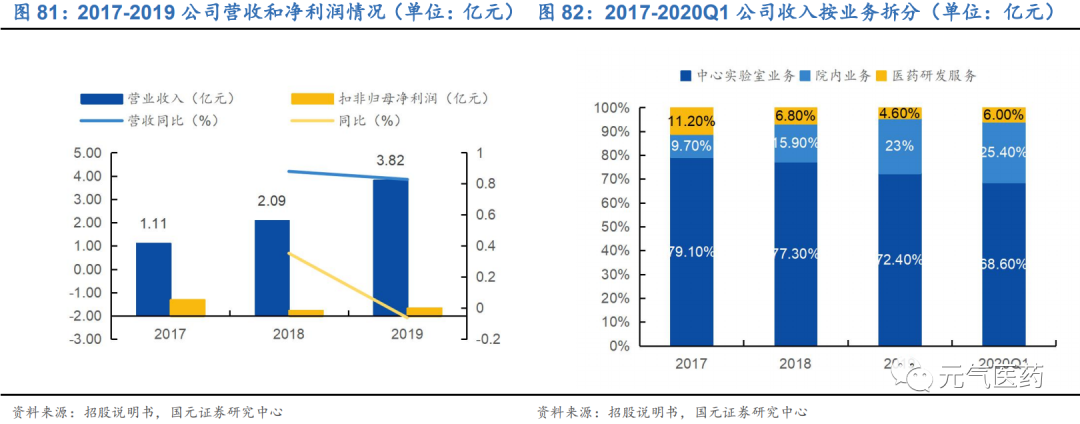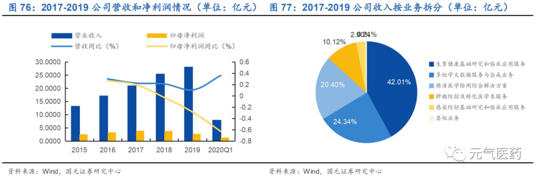 醫(yī)藥研發(fā)服務(wù):為制藥公司開發(fā)針對各種癌癥的靶向治療和免疫治療新藥,并未醫(yī)院提供癌癥診斷和治療研究,目前收入占比較少,2018-2020Q1 分別貢獻收入 6.8%、4.6%和 6.0%。