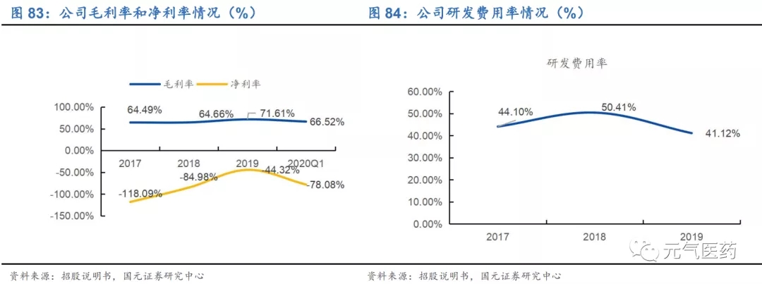 毛利率超過 60%,研發(fā)投入較高。從毛利率角度看,公司毛利率超過 60%,并且逐年穩(wěn)定上升。作為一家研發(fā)驅(qū)動 性企業(yè),公司在研發(fā)投入上始終居高不下,2017-2019 年研發(fā)費用率維持在 40-50%。
